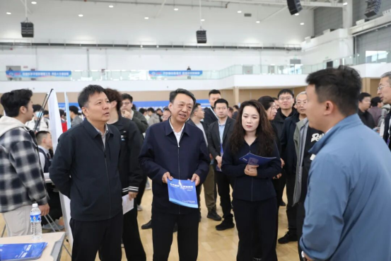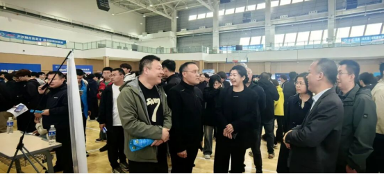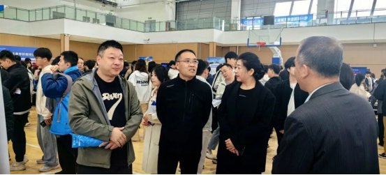 上午9时,双选会正式拉开帷幕,体育馆内人头攒动,气氛热烈。学院党委书记王一明、院长阎雷等领导深入现场,走访各企业展位,与用人单位代表和毕业生亲切交流,详细了解企业招聘需求和毕业生求职意向,勉励同学们珍惜机会、积极应聘,找到适合自己的发展平台。共青团大同市委、大同市人社局、市就业创业服务中心、市数据局等部门领导莅临现场指导。